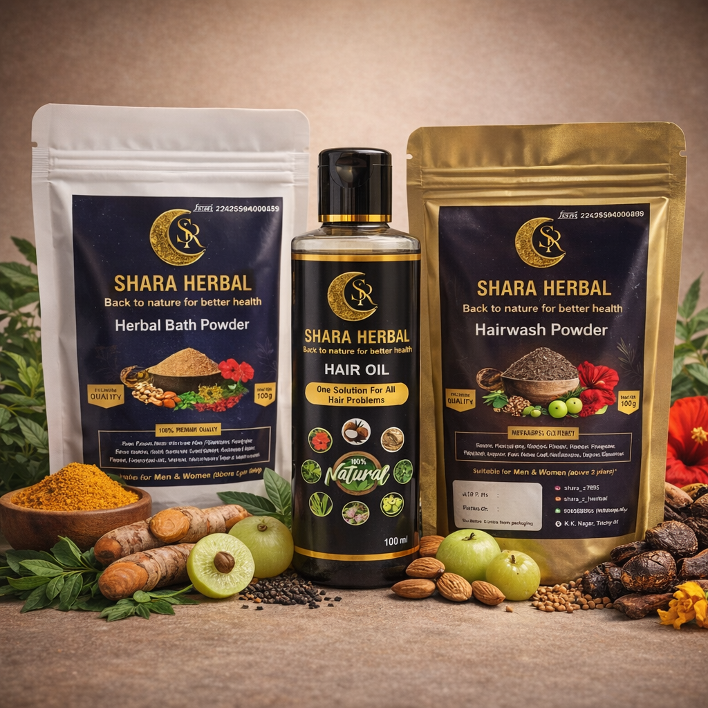 100ml hair oil 100g bath powder 100g Shikakai powder